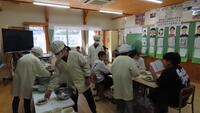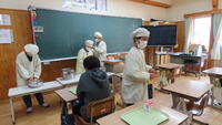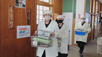 本日は、1月の地産地消給食・美郷の日です。本日の給食は北郷の岡田商店さんの「ナバ手羽餃子」と南郷の鬼神グループさんが作る「柚子ドレッシング」のサラダでした。