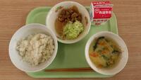 麦ごはん 春雨のオイスターソース炒め あおさスープ