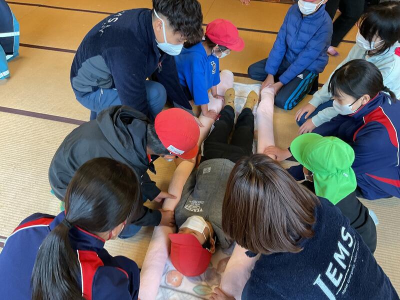 園児・小学生・中学生が一緒になって、心肺蘇生法を体験しました。
