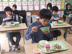 〇今日の給食のメニューは、麦ごはん、煮魚こんにゃく、小松菜の味噌汁でした。