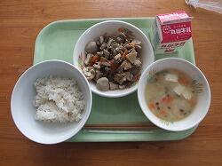〇今日の給食のメニューは、麦ごはん、筑前煮、石狩汁でした。