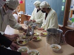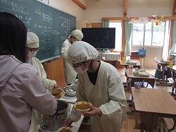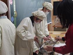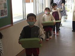 3月9日より令和5年度に向けて、年長さんが1年生と一緒に給食を食べるようになりました!!