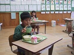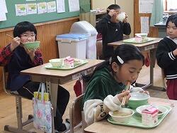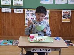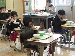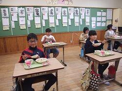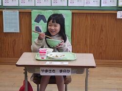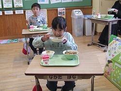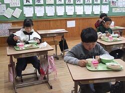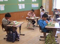 今日も、幼稚園生が1年生と一緒に給食をいただきました。