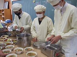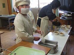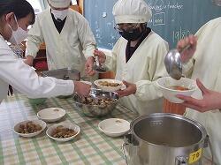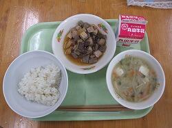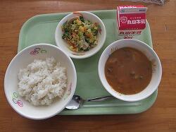 明日の給食のメニューは、鶏肉と大豆の味噌がらめ、かき玉汁です。