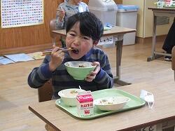 〇今日の給食のメニューは、麦ごはん、雑煮、田作り、紅白なますでした。