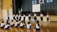 新1年生と各学年の紹介があり、縦割りの「じいぞ班」ごとに「人間知恵の輪」のレクリエーションを行いました。最後に1年生と7年生にメダル贈呈が行われ、みんなで校歌を歌いました。