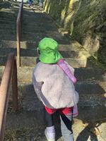 地蔵尊の階段をすらすら登っていく子ども達。