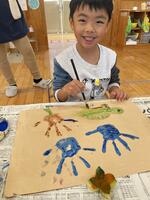 製作でせっかく絵の具を使用したので、そのまま絵の具遊びを楽しみました。