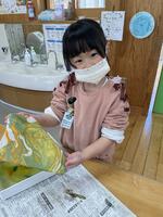 和紙に色々な色がにじむ様子を「おー!すごい!」「きれいー!」と声をあげたり、折り紙をちぎりながら、「このぐらいの大きさでいいかな?」と自分で考えながら取り組んでいた子どもたちでしたよ。