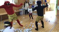 福の神様もやってきて、ついに鬼が幼稚園から逃げていきました!