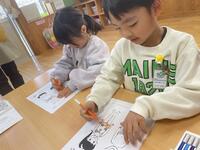 文字盤は好きな色で色塗りをし、仕上がりに大満足の子どもたちでした。