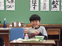 〇給食のメニューは、麦ごはん、いわしのカリカリフライ(ゆで野菜)、豚汁、節分豆でした。
