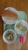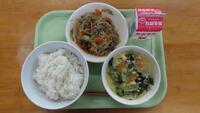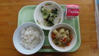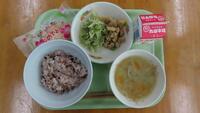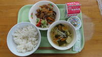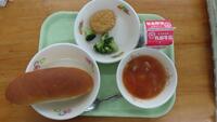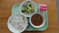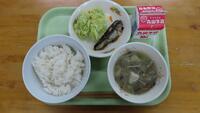 本日は、運動会の予行練習でした。天気も良く、みんな一生懸命競技や係、応援をしたので、いつも以上に給食がおいしいと思います。栄養バランスのよい給食を食べて、午後からもがんばってほしいです。