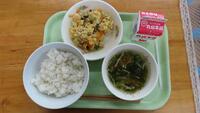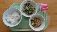 本日のメニュー 麦ごはん 新じゃがいものそぼろ煮 のり酢和え