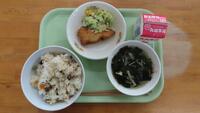 じとっこの炊き込みご飯 あじフライ 春キャベツのマリネ すまし汁
