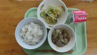 麦ごはん いわし生姜煮 ゆでやさい 鶏ごぼうみそ汁