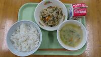 本日のメニュー 麦ごはん ホイコーロー 春雨スープ