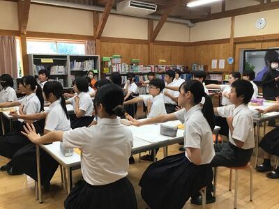 7~9年生が参加しました。美郷町地域包括支援センターから6名の方が来てくださり、認知症のことや認知症方、そのご家族の方への支援の仕方などを大変分かりやすくお話してくださいました。