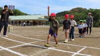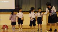 本日2校時目に、全校が集まって歓迎集会を行いました。はじめに、新入生の自己紹介を行い、学年の紹介を行った後、「じぃぞ班」(縦割りの班)で活動しました。今回は、手をつないでフラフープを送るゲームをしました。みんなで協力して楽しく活動できました。