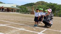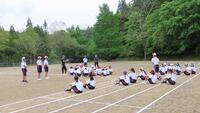 本日、2校時に幼稚園から4年生まで、3校時に5年生から9年生まで集まって、運動会に向けての合同練習を行いました。