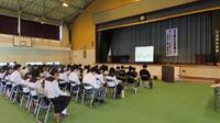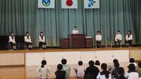 全校児童生徒が集まり、体育館で行いました。旧児童生徒会役員の退任のあいさつ、感謝状授与、新児童生徒会役員への任命状授与、あいさつと続きました。新役員の立派な所信表明は、これからの美郷北義務教育学校をもっとよりよくしていこうという気概が感じられました。
