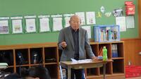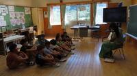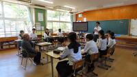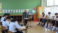 9年生の社会科の授業では、ゲストティーチャーとして戦時経験者の沖田薫明さんをお招きし、沖縄から学童疎開があった戦時中の北郷での生活等について話をしていただきました。9年生の「知りたい・学びたい」という願いから実現した授業は、本やインターネットにはない情報を知る貴重な学びとなりました。9年生は、学んだことを整理し、6~8年生に向けて「戦争の悲惨さと世界平和の大切さ」を発表し、強く伝えます。