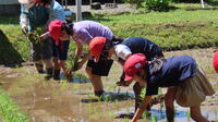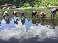 5年生が、甲斐栄さんの田んぼをお借りして田植えを体験させていただきました。今日は天候もよく、一生懸命植え、作業スピードも速く、とても上手に植えることができました。甲斐さん、ありがとうございました。