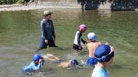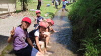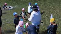 今日は川遊び!朝から楽しみな様子で登校してきた1・2年生。先生方に見守られながら、楽しい川遊びができました。