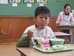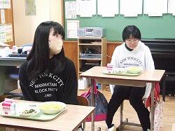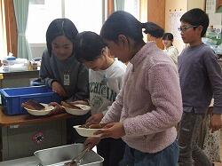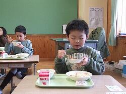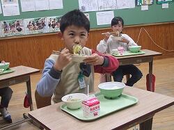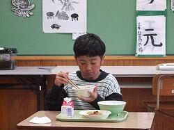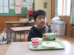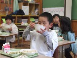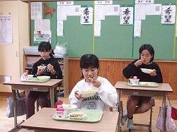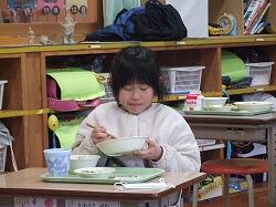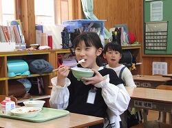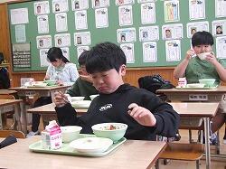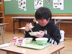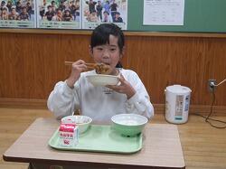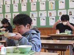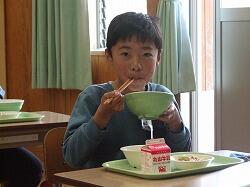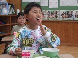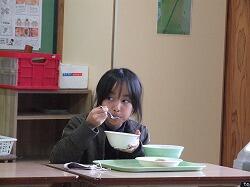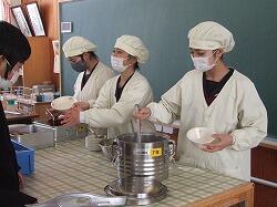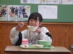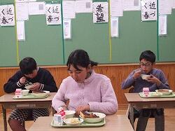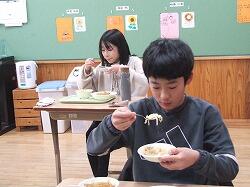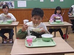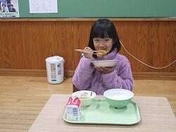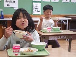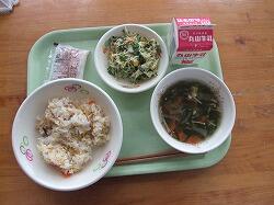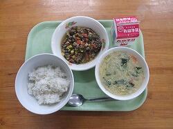 〇今日の給食のメニューは、もずく丼、かき玉汁でした。