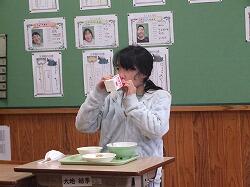 明日の給食のメニューは、もずく丼、かき玉汁です。