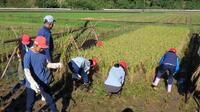 5年生が1時間目から「稲刈り」を体験させていただきました。