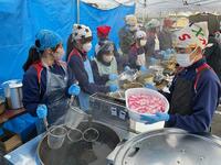 3月12日(木)宇納間地蔵大祭2日目、8、9年生が商品開発販売を行いました。朝早くから開店準備を行い、無事に予定時刻である9時30分に開店することができました。地域内外のお客様からたくさんの注文とお褒めの言葉をいただきながら、約260食の「あんなばうどん鶏昆布爆誕」を完売することができました。うどんを食べて笑顔になるお客様の姿を見て、大きなテーマである「地域貢献」を達成することができたと思います。うどんを食べていただいたみなさん、ありがとうございました。来年度も、美郷北義務教育学校全体でうなま地蔵大祭を盛り上げていきたいと思います。