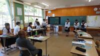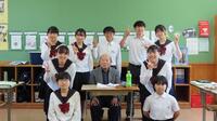 9年生の社会科の授業では、ゲストティーチャーとして戦時経験者の沖田薫明さんをお招きし、沖縄から学童疎開があった戦時中の北郷での生活等について話をしていただきました。9年生の「知りたい・学びたい」という願いから実現した授業は、本やインターネットにはない情報を知る貴重な学びとなりました。9年生は、学んだことを整理し、6~8年生に向けて「戦争の悲惨さと世界平和の大切さ」を発表し、強く伝えます。