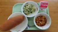 ミルクパン ポークビーンズ 茎わかめのレモンサラダ
