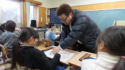 延岡の旭珠友会の今村様に来校していただき、そろばんについて学ぶ機会を得ることができました。子どもたちが目を輝かせて取り組み始めたのは、ある程度そろばんの扱い方を理解した時でした。子どもたちの技術の修得の速さにはいつも驚かされます。