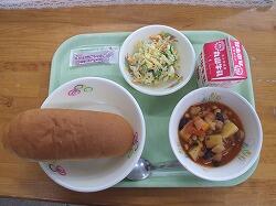 〇給食のメニューは、コッペパン(いちごジャム)、チリコンカン、エッグサラダでした。