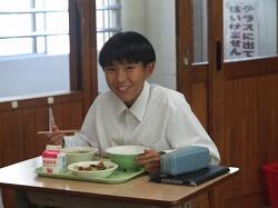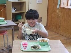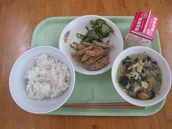 〇給食のメニューは、麦ごはん、いわしの梅揚げ(塩昆布和え)、押し大豆の味噌汁でした。