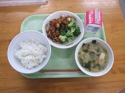 〇給食のメニューは、麦ごはん、魚のたこ焼きソースがらめ(ゆでブロッコリー)、冬瓜の味噌汁でした。