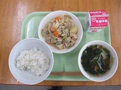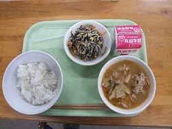 明日の給食のメニューは、クッパ、ひじきの和え物です。