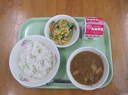 明日の給食のメニューは、ポークカレーライス、柚子ドレッシングサラダです。