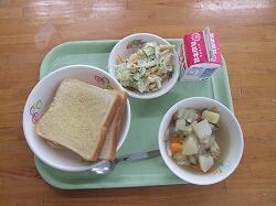 〇給食のメニューは、アーモンドトースト、ポトフ、マカロニサラダでした。