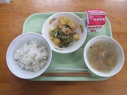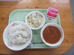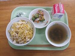 月曜日の給食のメニューは、鶏飯、酢味噌あえです。