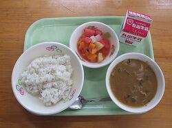 月曜日の給食のメニューは、夏野菜カレーライス、フルーツポンチです。
