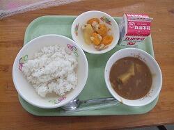 〇給食のメニューは、ポークカレーライス、フルーツナタデココでした。