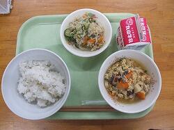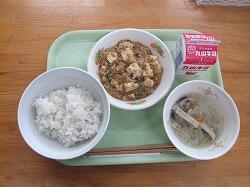 〇給食のメニューは、麦ごはん、麻婆豆腐、春雨スープでした。