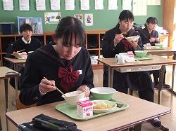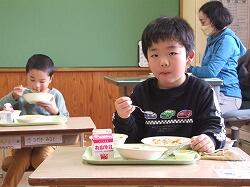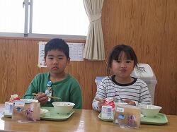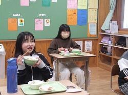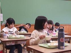 〇給食のメニューは、麦ごはん(おにぎりのり)、鮭の塩焼き、高菜の炒め物、栄養すいとん汁でした。