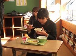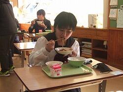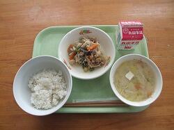 月曜日の給食のメニューは、麦ごはん、千切り大根の炒め煮、白菜の味噌汁です。
