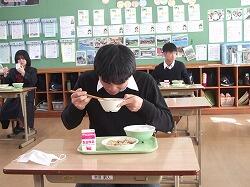 〇給食のメニューは、麦ごはん、千切り大根の炒め煮、白菜の味噌汁でした。