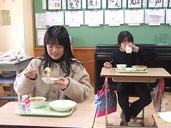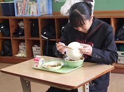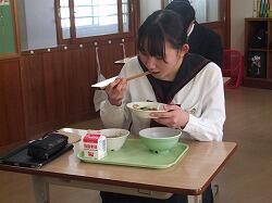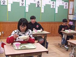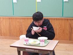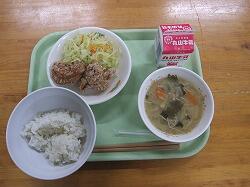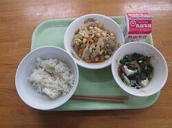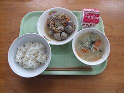 〇給食のメニューは、麦ごはん、大豆の五目煮、貝割れ菜のすまし汁でした。