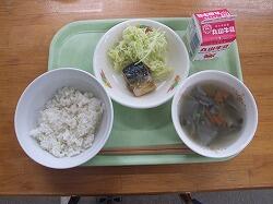 月曜日の給食のメニューは、麦ごはん、さばゆず味噌煮、けんちん汁です。